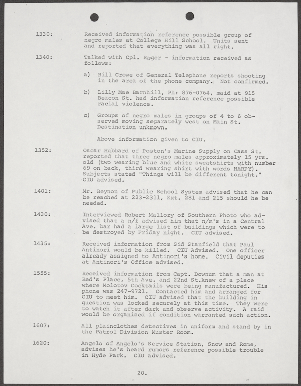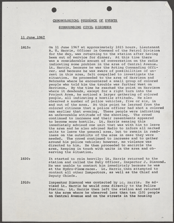 Beard, Malcolm E. (Malcolm Elmore), 1919-. After Action Report on Civil Disorder in Tampa, 1967. 1967. State Archives of Florida, Florida Memory. Accessed 16 Feb. 2026.<https://www.floridamemory.com/items/show/351441>